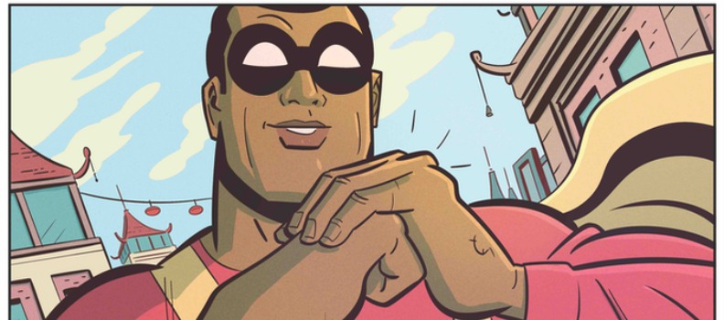 Nate Cosby: It began with Jacob Edgar and I wanting to work together on something new. We’d done a western called Fantastic Bandits, and for this next one, I was trying to think of something I’d never written before, to challenge myself. I’d never really written a superhero story…maybe because I’d edited so many superhero comics, it didn’t really occur to me that I had anything different to say about them. But after going a few years without working on them, or reading them, my mind started wandering back to what I loved about superheroes as a kid…this idea of costumed people fighting bad guys, to try and help people. And then I tried to think about how far that idea could be taken…like, what if there was a person that wanted to be a hero ALL the time. What would that look like? How would they do it? The answer for me was, he’d become TWO heroes.